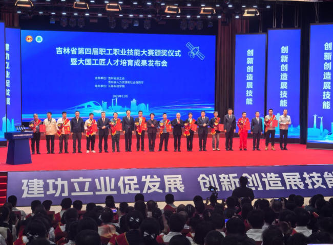 2025年11月16日,吉林省第四屆職工職業(yè)技能大賽頒獎儀式暨大國工匠人才培育成果發(fā)布會在長春科技學(xué)院隆重舉行。本屆大賽由吉林省總工會、省人力資源和社會保障廳聯(lián)合主辦,以“建功立業(yè)促發(fā)展、創(chuàng)新創(chuàng)造展技能”為主題,設(shè)置無人機裝調(diào)檢修、5G技術(shù)創(chuàng)新、人參鑒別加工等40個賽項。經(jīng)過歷時6個月、初賽、復(fù)賽與決賽三輪激烈比拼,一批扎根一線、技藝精湛的優(yōu)秀職工脫穎而出,最終40名選手分獲各賽項冠軍。